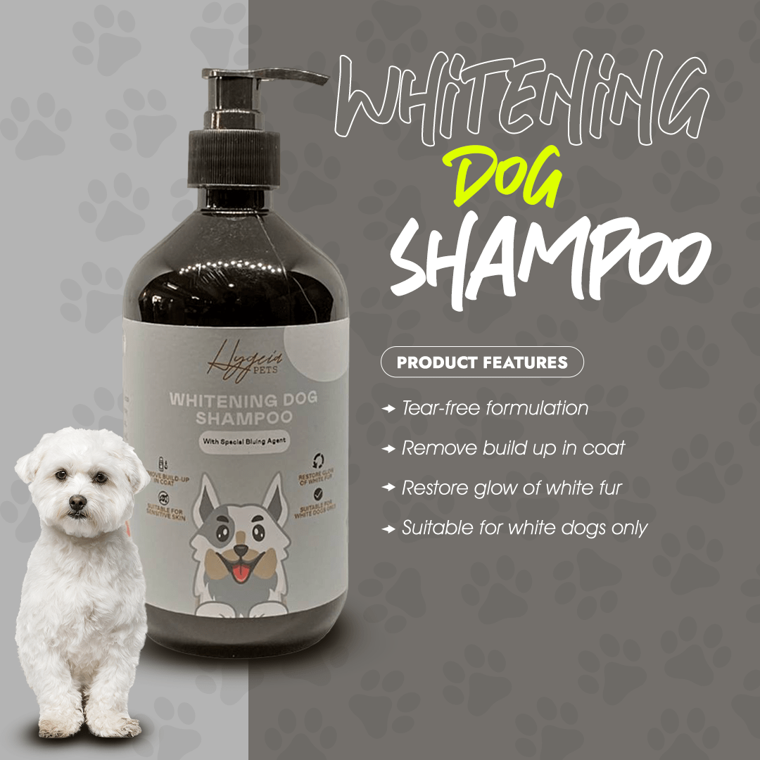 Whitening Dog Shampoo is specially formulated to be tear-free as it does not contain any SLES. The blue dye used is pet friendly and food grade. It color corrects yellowish fur to look whiter and brighter to restore the glow of the fur. It deep cleanses the fur to remove any build up in the dog coat, leaving fur refreshed and clean.
