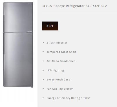 (Bulky) SHARP SJ-RX42E-SL2 315L SILVER TOP FREEZER REFRIGERATOR