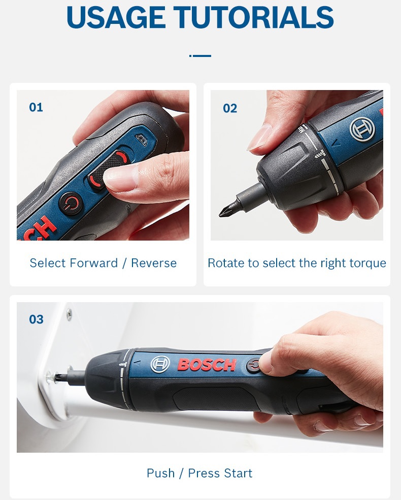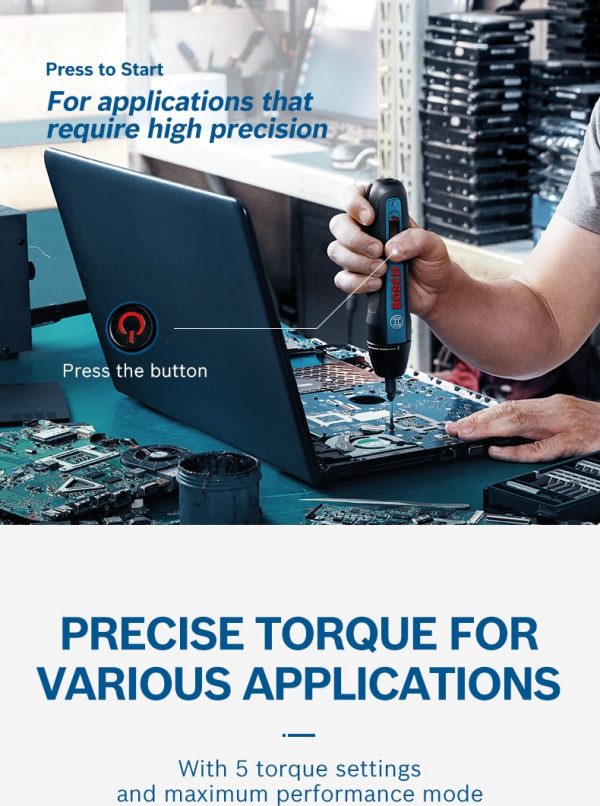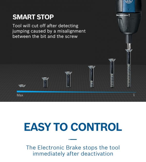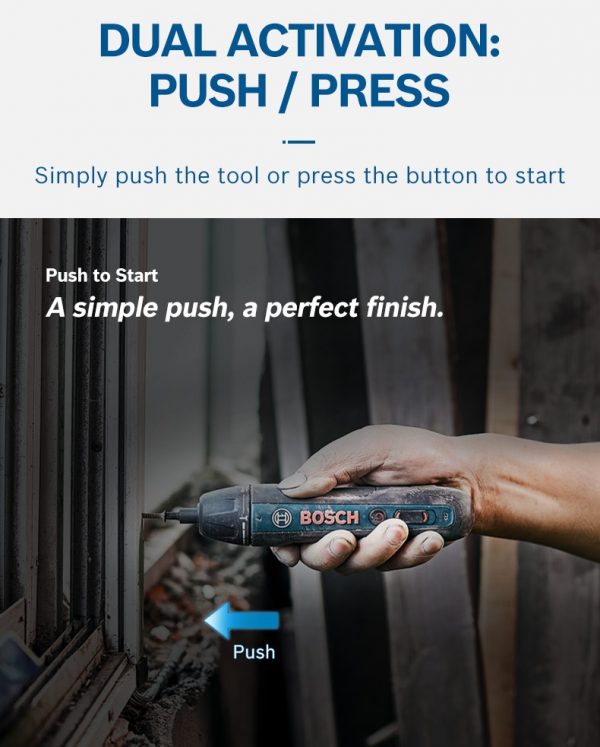 - Intuitive operation style – Just push to drive screws (Push & Go)