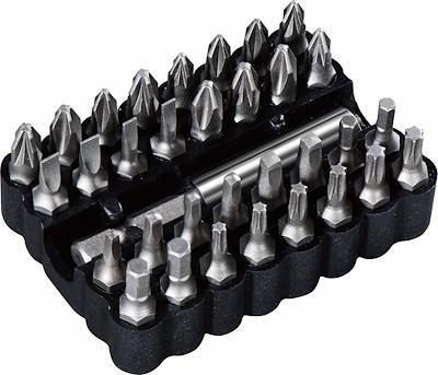 33-piece Screwdriving Bit Set (Bit-Holder, 3x PH1, 3x PH2, 3x PZ1, 3x PZ2, 2x SL3, 2x SL4, 2x SQ0, 2x SQ1, 2x SQ2, 2x HEX3, 2x HEX4, 2x T10, 2x T15, 2x T20) (Bit-Holder, 3x PH1, 3x PH2, 3x PZ1, 3x PZ2, 2x SL3, 2x SL4, 2x SQ0, 2x SQ1, 2x SQ2, 2x HEX3, 2x HEX4, 2x T10, 2x T15, 2x T20)