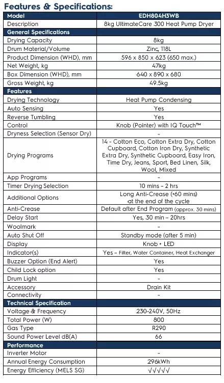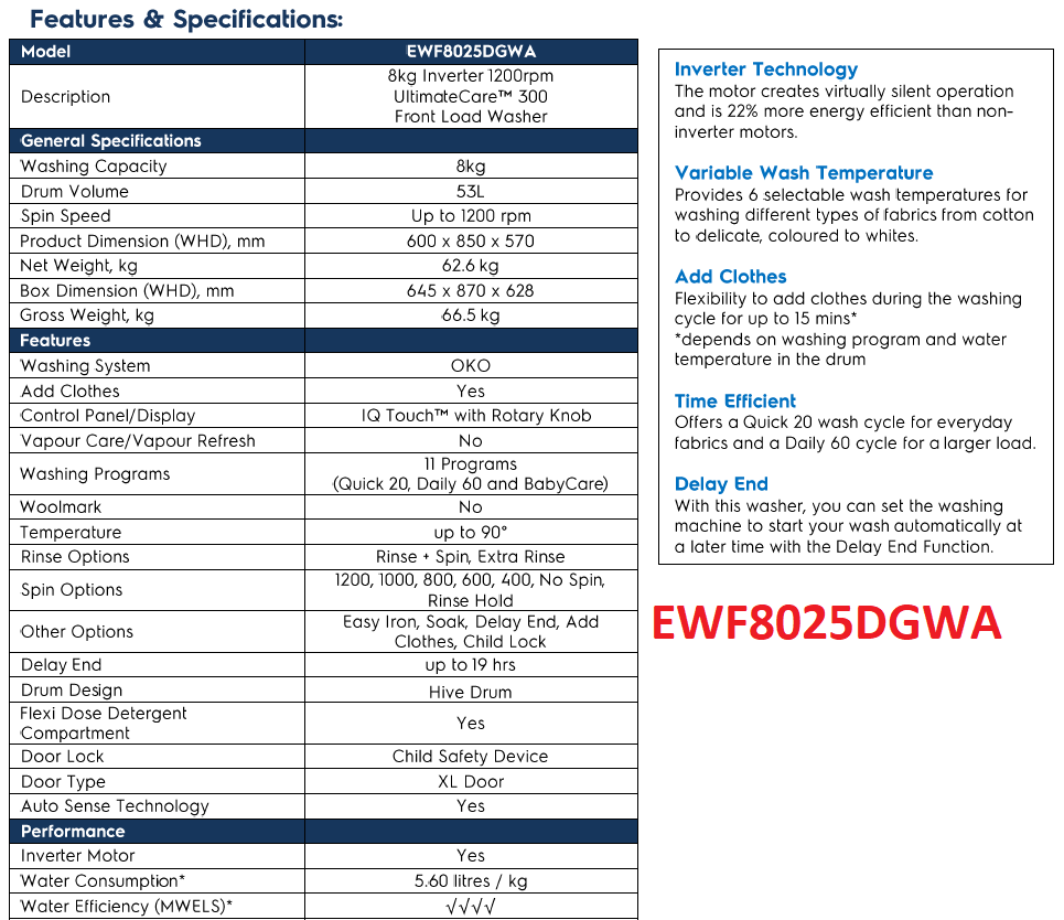 (Bulky) ELECTROLUX EWF8025DGWA 8KG FRONT LOAD WASHING MACHINE + ELECTROLUX EDH804H3WB 8KG FRONT LOAD HEAT PUMP DRYER