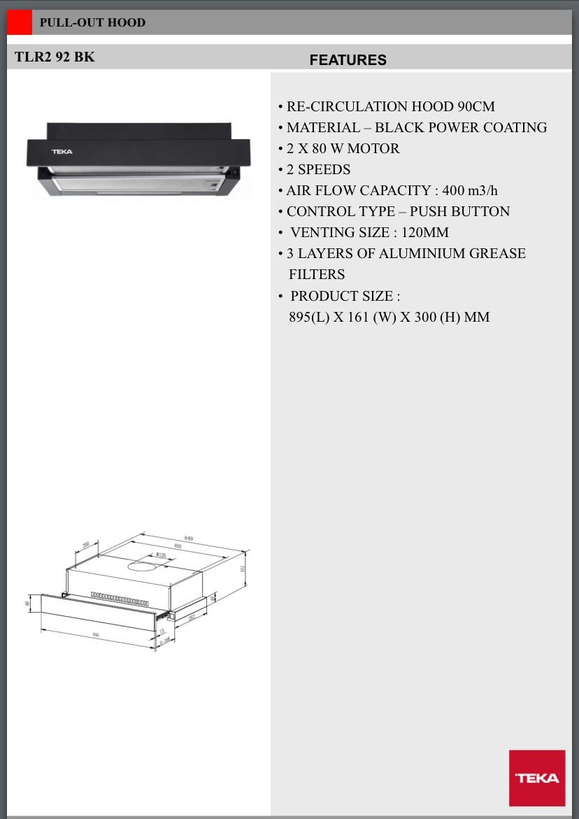 TEKA TLR2 92 BK 90CM BLACK TELESCOPIC HOOD