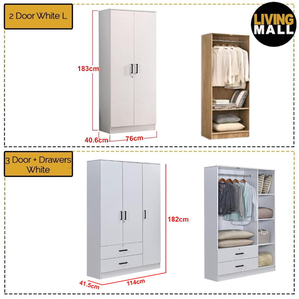 2 Door + Drawer White