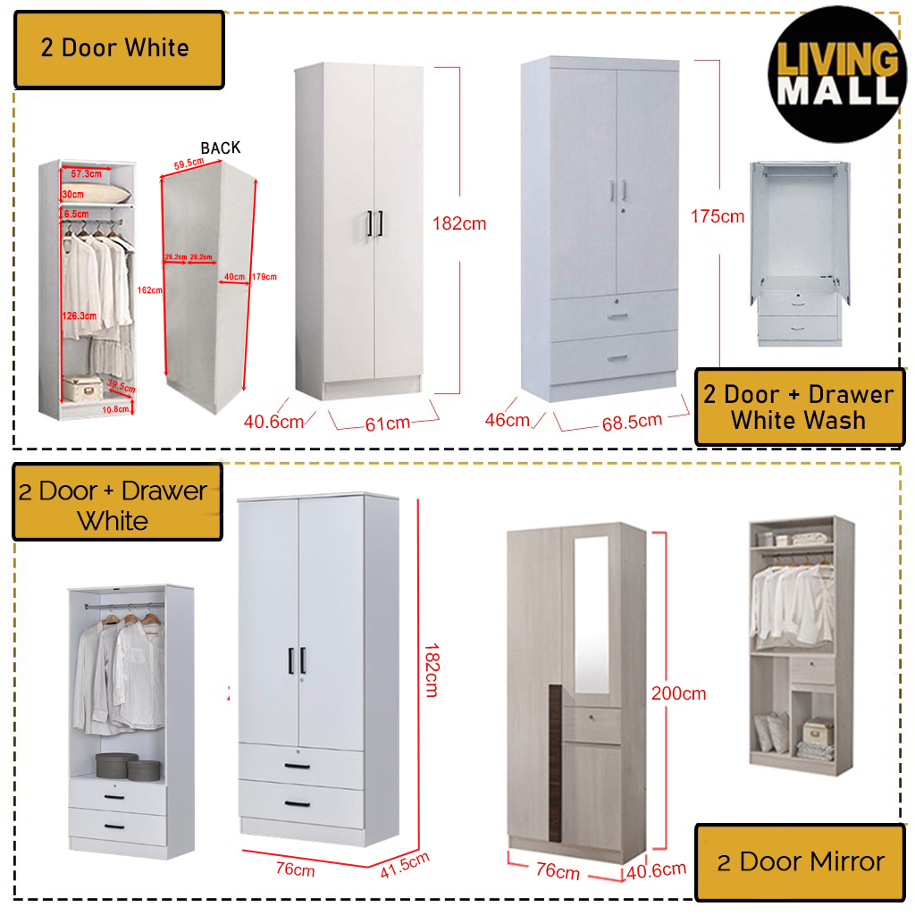 2 Door White - L 61. x D 40.6. x H 182. cm