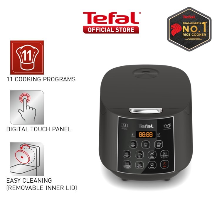 Tefal Easy Plus Rice Cooker 1.8L RK736B - 11 programmes, Artificial Intelligence, spherical pot, removeable inner lid, 10 cups