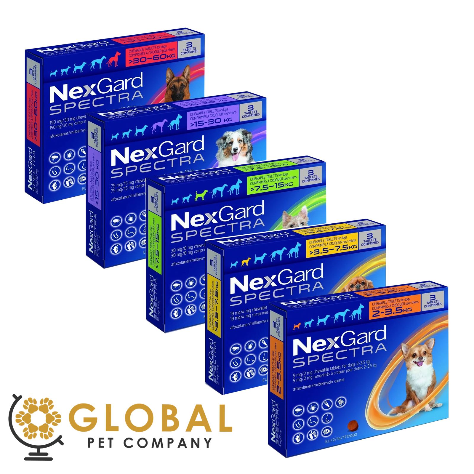 • NexGard Spectra follows the ESCCAP puppy roundworming recommendations and comes in five weight ranges to ensure appropriate dosing.