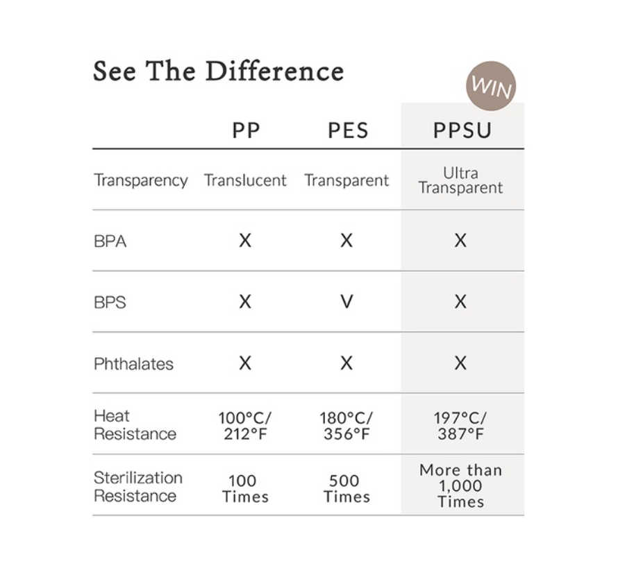 ● Material:Cap/Collar/Handles/Plate:Polypropylene(-20℃~+100℃) Bottle: Polyphenylene Sulfone(-20℃~+197℃)Anti-Colic Teat: Silicone(-40℃~+150℃)Straw: Silicone(-20℃~+120℃)Straw Ball: Polypropylene/Stainless Steel (-20℃~+100℃) "