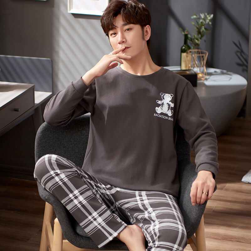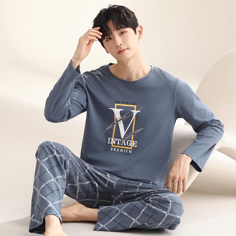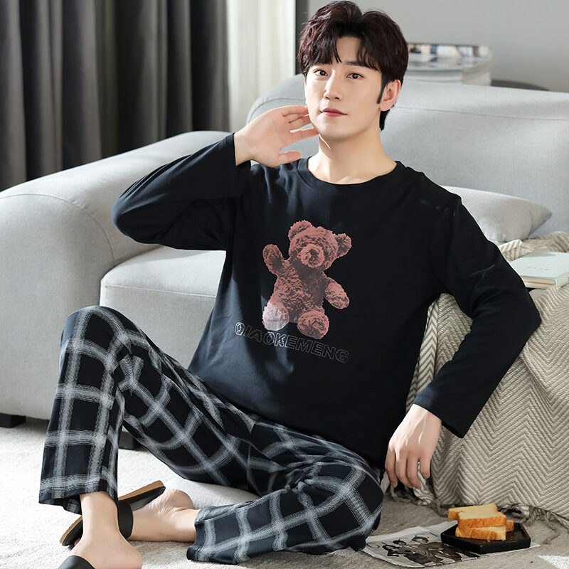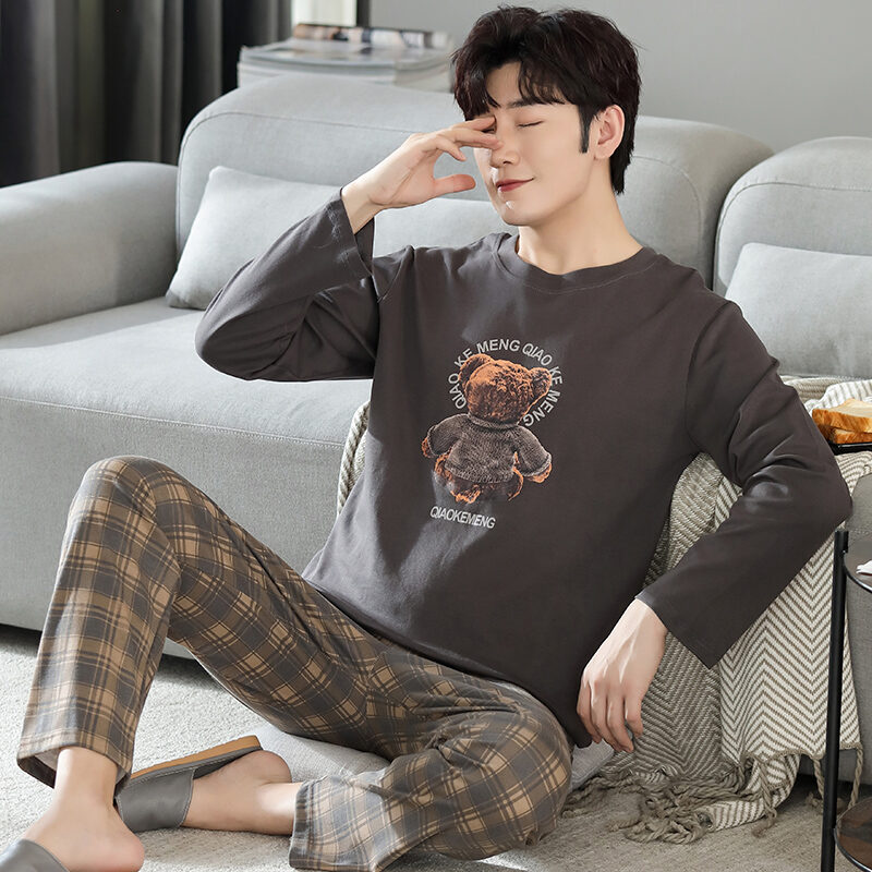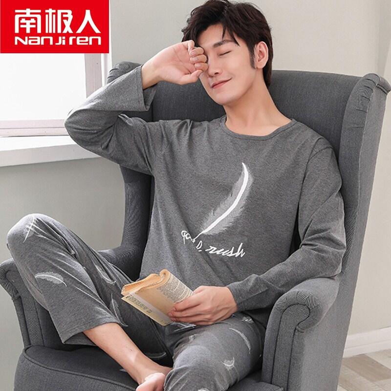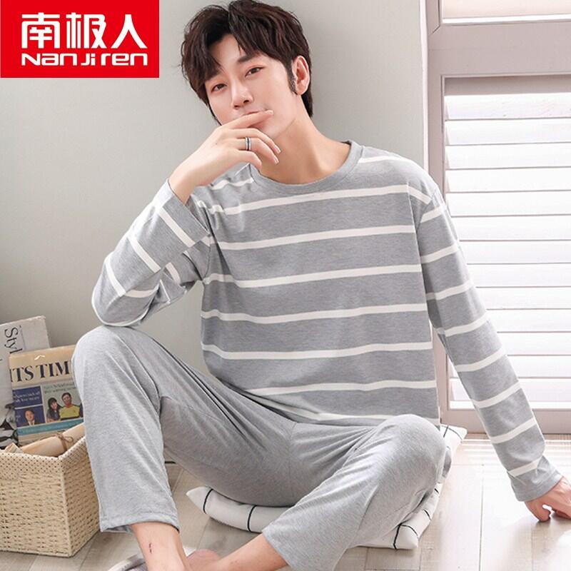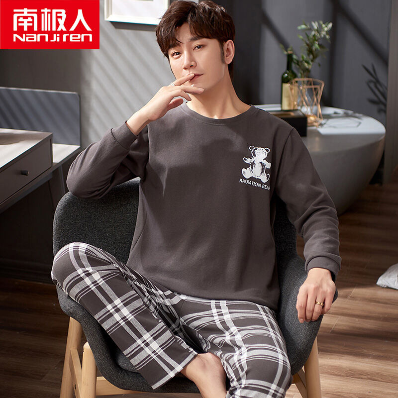 Nanjiren Men's Pajamas Spring and Autumn Pure Cotton Long Sleeve Suit Autumn Winter Youth Cotton Homewear Men's Outerwear