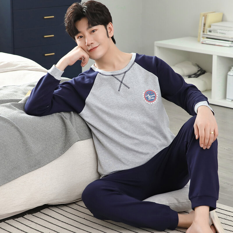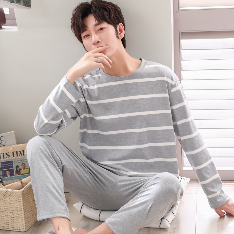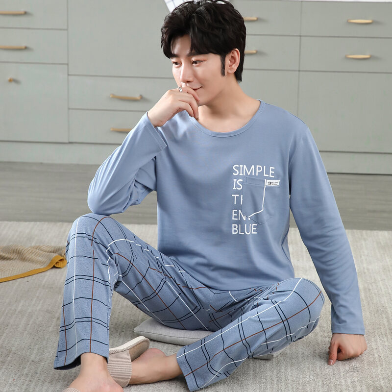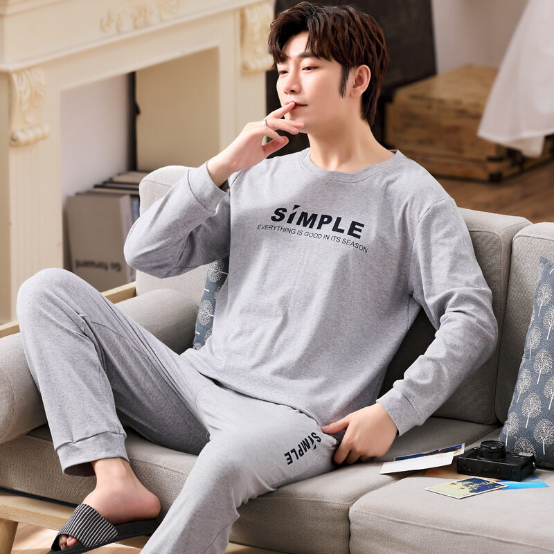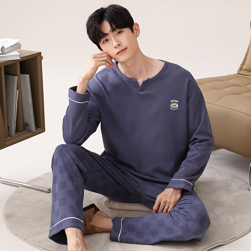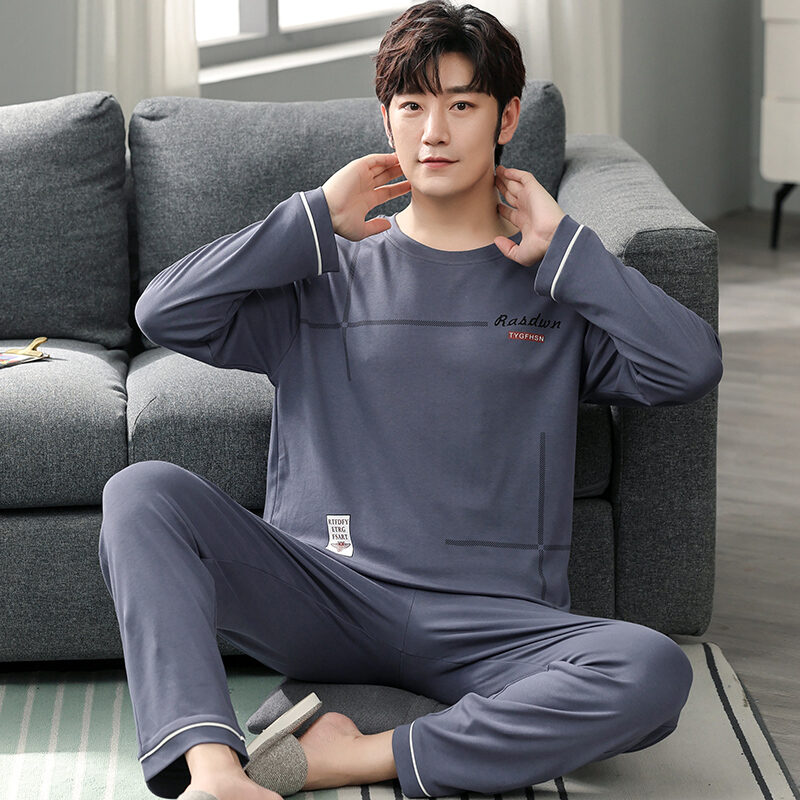 Nanjiren Men's Pajamas Spring and Autumn Pure Cotton Long Sleeve Suit Autumn Winter Youth Cotton Homewear Men's Outerwear