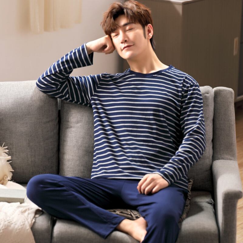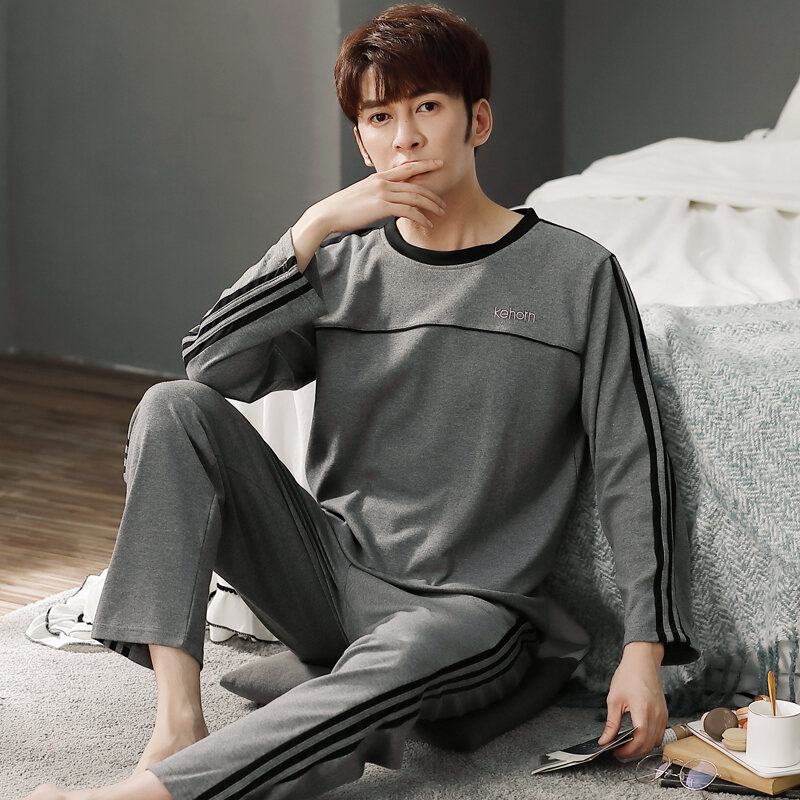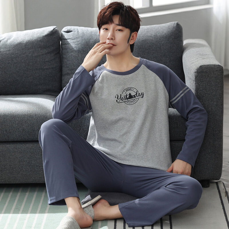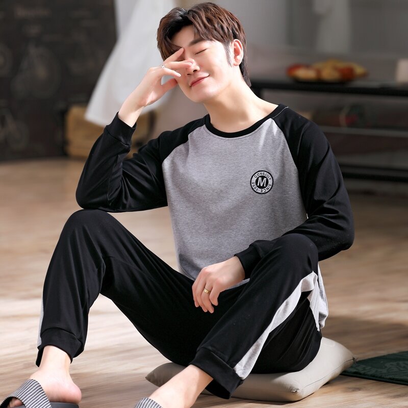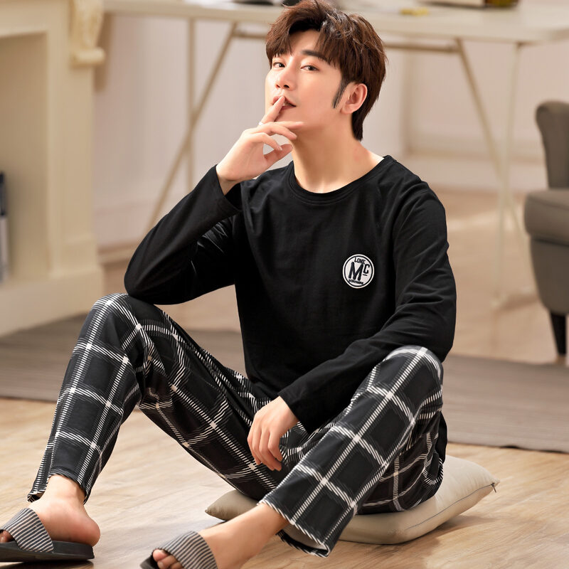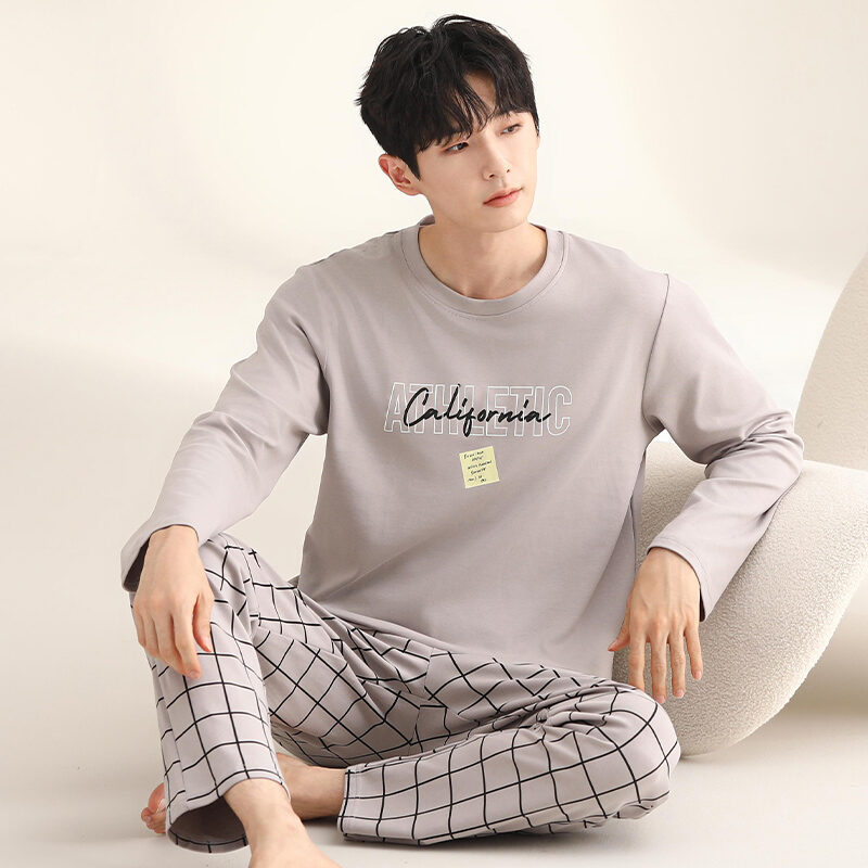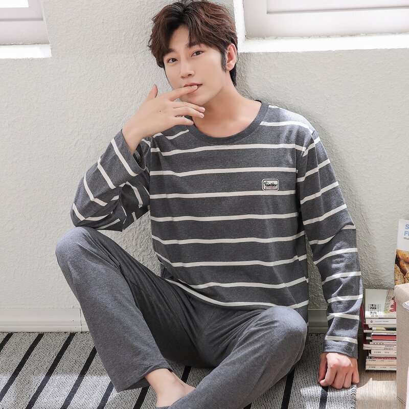 Nanjiren Men's Pajamas Spring and Autumn Pure Cotton Long Sleeve Suit Autumn Winter Youth Cotton Homewear Men's Outerwear