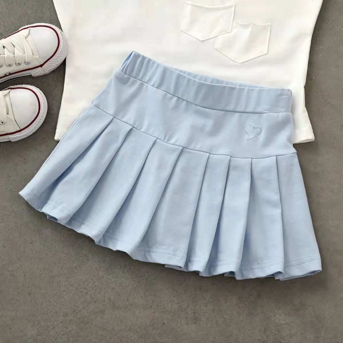 Skirt style: pleated skirt Suitable age: middle school children (over 8 years old, over 140cm) Supply category: spot Style: skirt pattern: plain Picture real shot: official picture Elements: movement Flat car stitch pitch 12~14 stitches/3cm: No Whether the hair/remnant thread is trimmed: not trimmed Lining composition: polyester fiber (polyester) Lining ingredient content: 96 (%) Color: white, pink, gray, black, blue Suitable height: 100,110,120,130,140,150,160,170 For the season: Summer