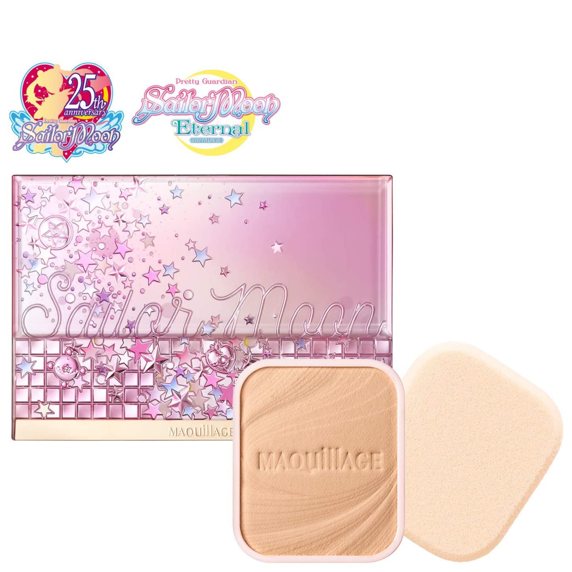 Product Introduction This limited edition set includes a specially designed compact case with stars and motifs that express the sparkle of the moment of transformation, and a powdery foundation. It's like having "beautiful skin. The mousse-based powder foundation softly and lightly covers pores and uneven skin tone, and comes with a limited-edition compact case decorated with a glittering motif of transformation. (C) Naoko Takeuchi, PNP/"Sailor Moon Eternal" the Movie Production Committee (C) Naoko Takeuchi [Contents] ・Dramatic Powdery UV (Refill) (Refill) Current product 9.3g SPF25/PA+++ all season with water Dual use without water. Comes with a soft-fitting sponge. Compact case SM2 (limited design), horizontal type Precautions for use Dramatic Powdery UV】 Please keep the sponge clean and use it as it will make the foundation surface hard and difficult to apply. If the sponge gets dirty, use Shiseido Sponge Cleaner N (sold separately) or lightly wash the sponge with a thin layer of neutral detergent in lukewarm water. Rinse thoroughly to remove any detergent residue, then drain and dry in the shade before use. If you find that the texture or finish of the product is not satisfactory, please use the Maquillage Sponge Puff (SF) (sold separately). Please note that the sponge puff may break if it is dropped or otherwise impacted. The SPF and PA indications on the product are measured by applying 2mg per square meter of application to the skin as specified in the International SPF Test Method. Directions for use Dramatic Powdery UV】 Put an appropriate amount on a sponge and spread from the center of the face outward. Use the remaining foundation on the sponge to finish the forehead, eye area, nose and mouth. We recommend using this foundation in combination with a makeup base such as Maquillage Dramatic Skin Sensor Base EX, which provides UV protection. Use only a small amount to achieve sufficient UV protection. Take out the inner case of the foundation (refill) and the soft-fitting sponge, and place them in the case. When setting the foundation (refill), insert the inner dish diagonally in the direction of the arrow as shown in the illustration, and press the edge of the dish from above until it clicks into place. To remove the inner dish from the case, place your finger on the edge of the inner dish and gently push it upward in the direction of the arrow. Translated with www.DeepL.com/Translator (free version)