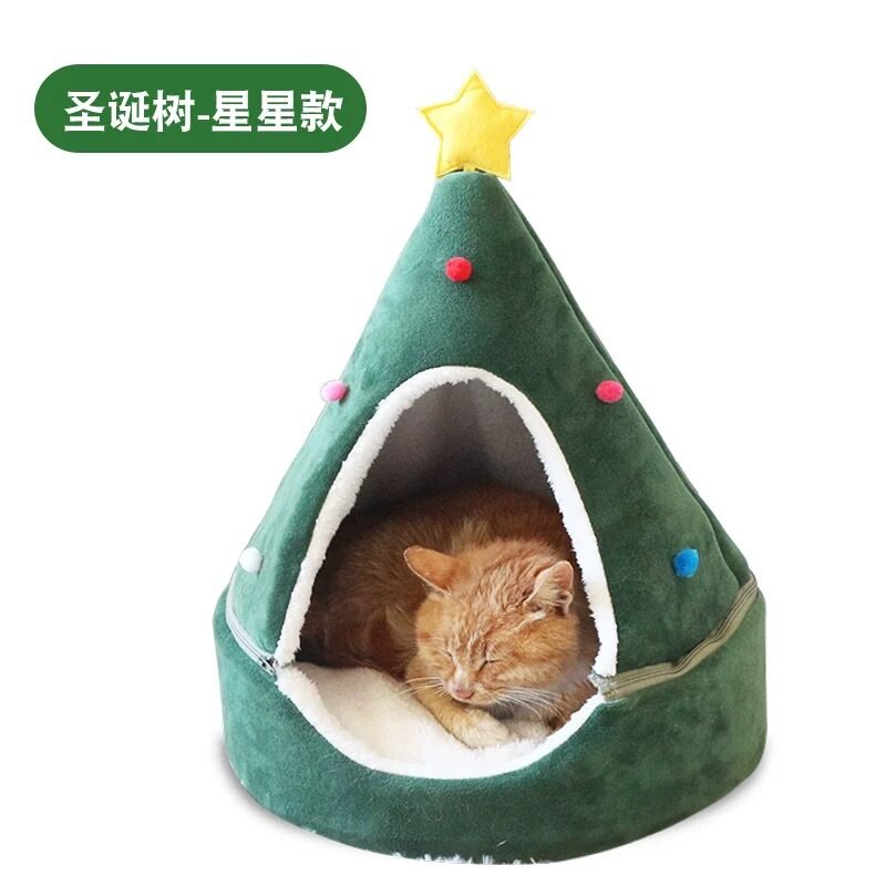 [Lovinland] Pet Christmas Tree Pet Bed Cat Bed Dog Bed Winter Warm Enclosed Cute Cat Bed Kennel