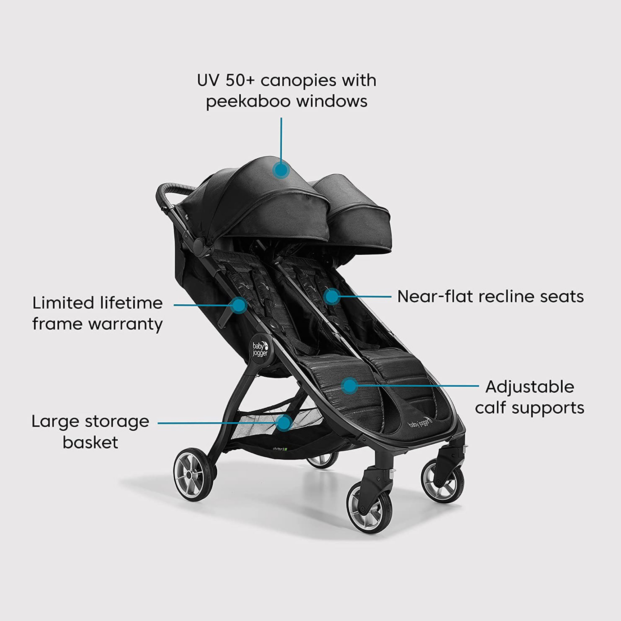 [Jarrons & Co] Baby Jogger City Tour 2 Double Stroller, Pitch Black (1 Year Warranty)