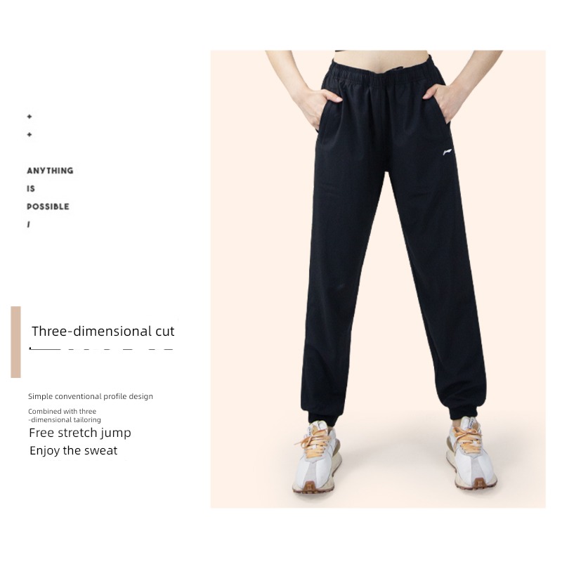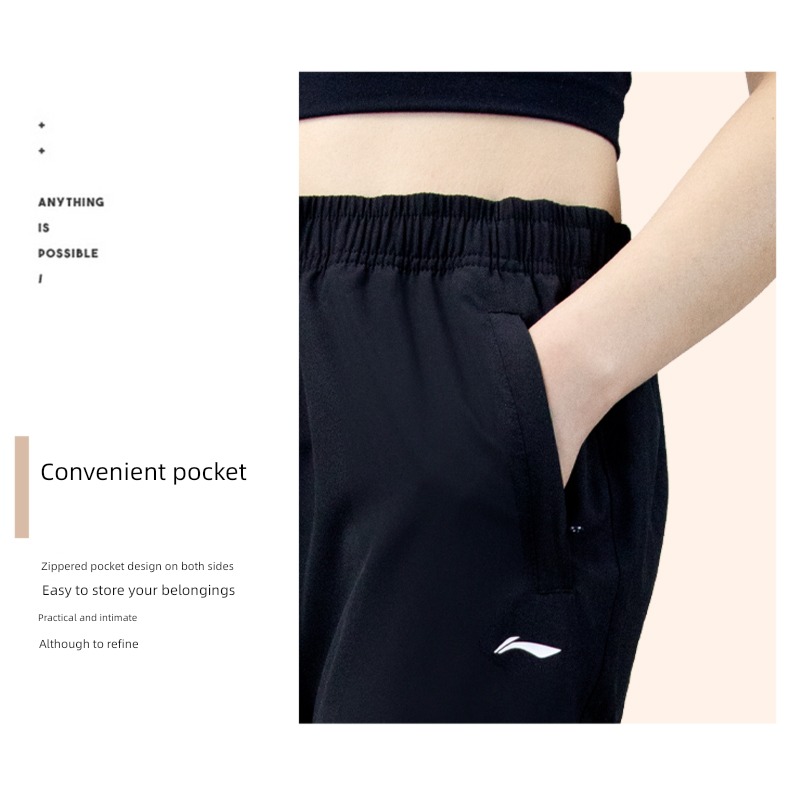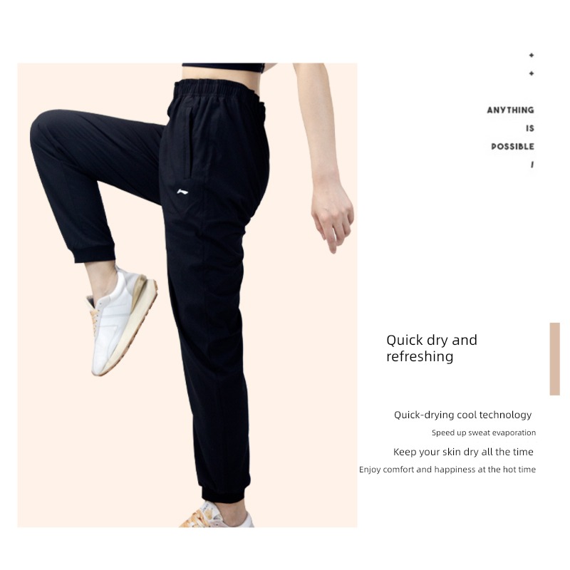 Li Ning Women's Summer Thin Loose Drooping Black Quick-Dry Pants