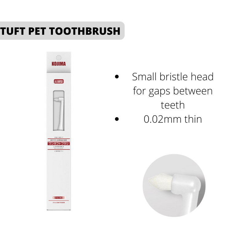 Kojima Tuft Pet Toothbrush for Dogs / Cats has small bristle head with pointed bristles to penetrate and reach into the smallest of gaps. It is suitable for pets who do not like to open their mouth for brushing.