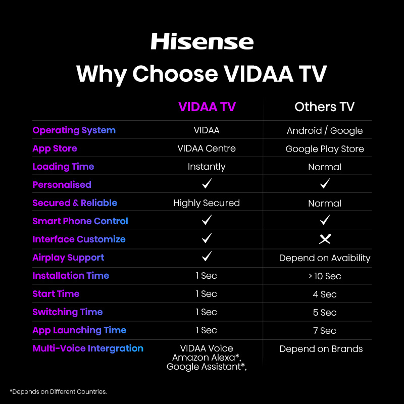 - Available for Hisense TV models 43" and above