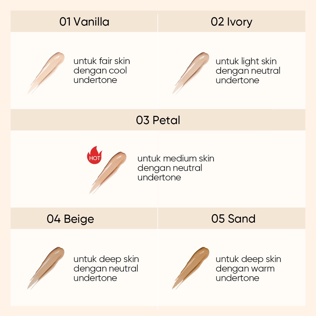 Skintific Cover All Perfect Cushion Cover All Perfect Cushion dengan hasil akhir sempurna dalam 1 kali pat, menggunakan Nano Silicone Crosspolymer 0.25 micron, memberikan coverage tinggi dan hasil akhir yang flawless. Dengan Raincoat Protective Film Technology, menutup air dan minyak, tahan hingga 12 jam untuk mencegah kusam dan warna tidak merata. Mengandung serum ingredients seperti 5X Ceramide, Centella and Hyaluronic Acid, yang memelihara, melembabkan, dan menguatkan skin barrier. Perlindungan ganda dari sinar matahari dengan physicochemically combined sunscreen, mengandung SPF 35 PA++++ untuk melindungi kulit dari bahaya sinar UV. Rubycell Puff Technology dengan teardrop shape, lubang udara yang rapat untuk menciptakan hasil akhir halus, merata dan sempurna. Medium to full coverage, tekstur ringan dan memberikan efek segar dan terhidrasi tahan lama pada kulit. Tersedia dalam 5 pilihan warna : Vanilla, Ivory, Petal, Beige, Sand, dengan kemasan double mirrored yang travel friendly, dengan ketebalan kurang dari 2 cm Ukuran: 11 ml No BPOM: NA11220200228 Manfaat: ●Menutup noda dan flaws di wajah dalam 1 kali pat ●Melindungi dari sinar UV dengan SPF 35 PA++++ ●Menahan minyak di wajah hingga 12 jam dengan Raincoat Film Technology ●Memelihara dan menguatkan skin barrier dengan kandungan Ceramide, Centella dan Hyaluronic Acid Hero Ingredients: Centella Asiatiqa : Sebagai anti inflamasi dan melembabkan kulit Ceramide : Menguatkan skin barrier Hyaluronic Acid : Melembabkan kulit dan mencegah kerutan Cara pemakaian: 1. Buka penutup cushion dan lepaskan stiker pelindung 2. Ambil secukupnya dengan menekan spons pada bagian dalam 3. Tap ke seluruh wajah 4. Tutup cushion apabila telah selesai digunakan agar tidak kering SAFE FOR ALL SKIN TYPES: No SLS No Alcohol No Paraben No Mineral Oil No Artificial Colorant Vegan Friendly Cruelty Free