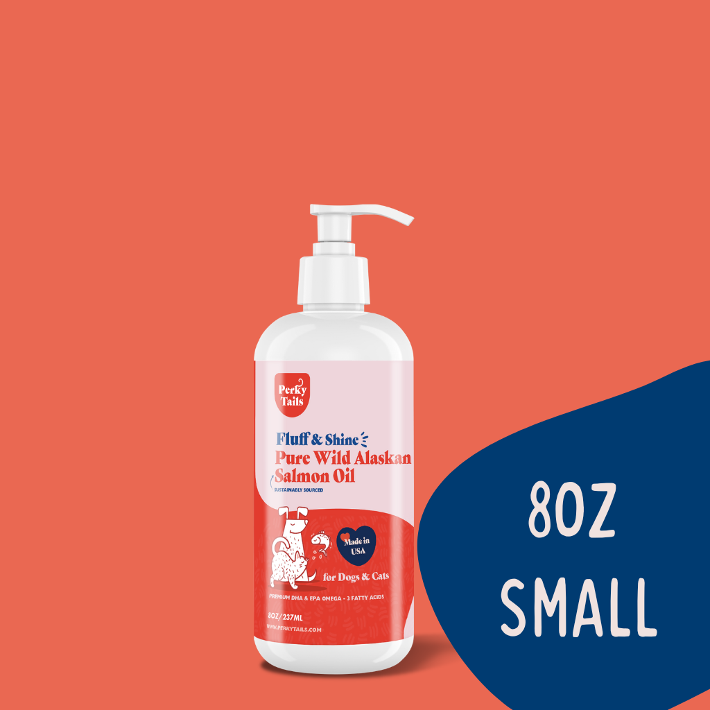 Perkytails Pure Wild Alaskan Salmon Oil for Dogs and Cats is a premium omega-3 fish oil that is great for skin and coat, joint, brain health and overall immunity!