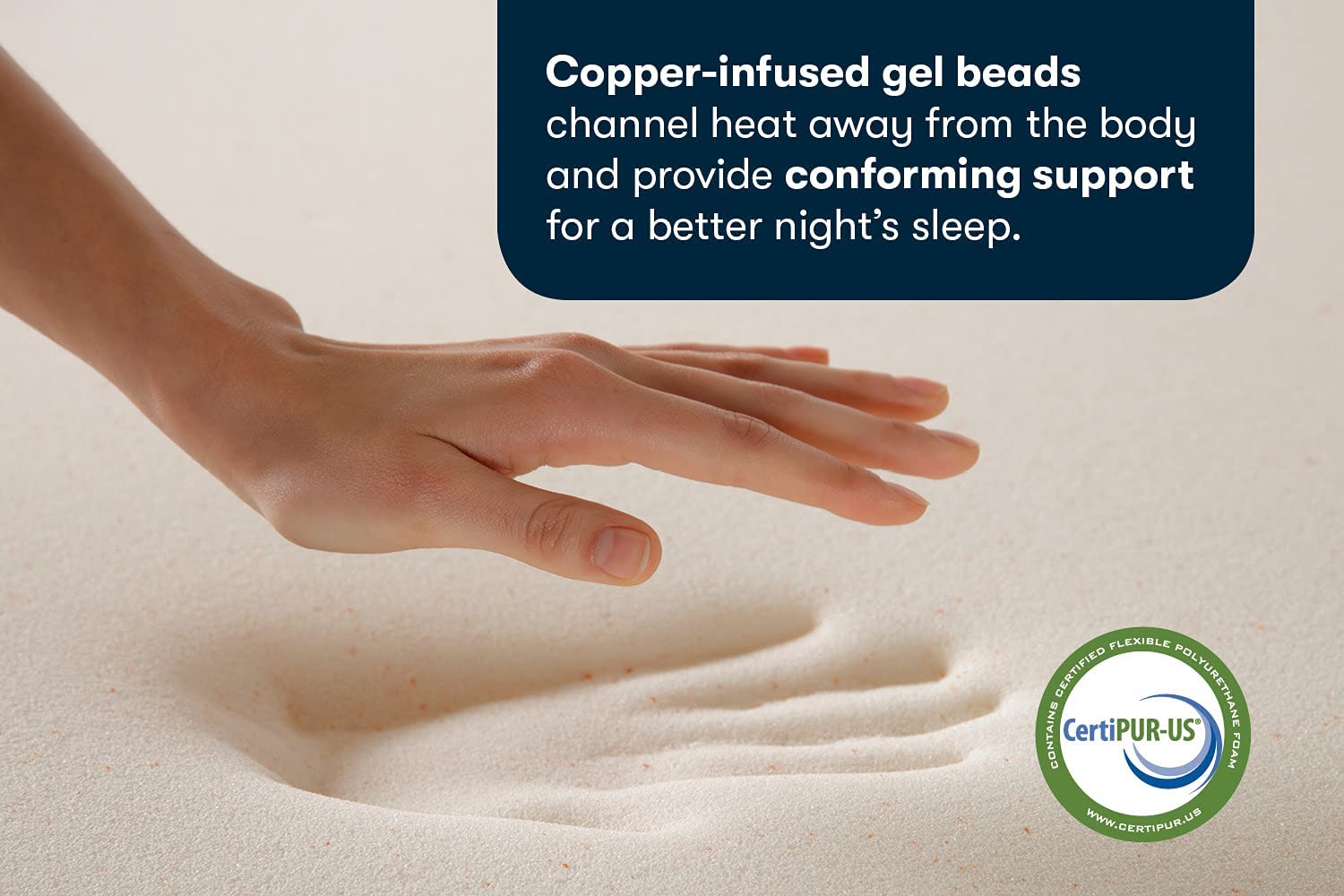 • Copper infused gel beads channel heat away from the body and provide conforming support for a better night's sleep