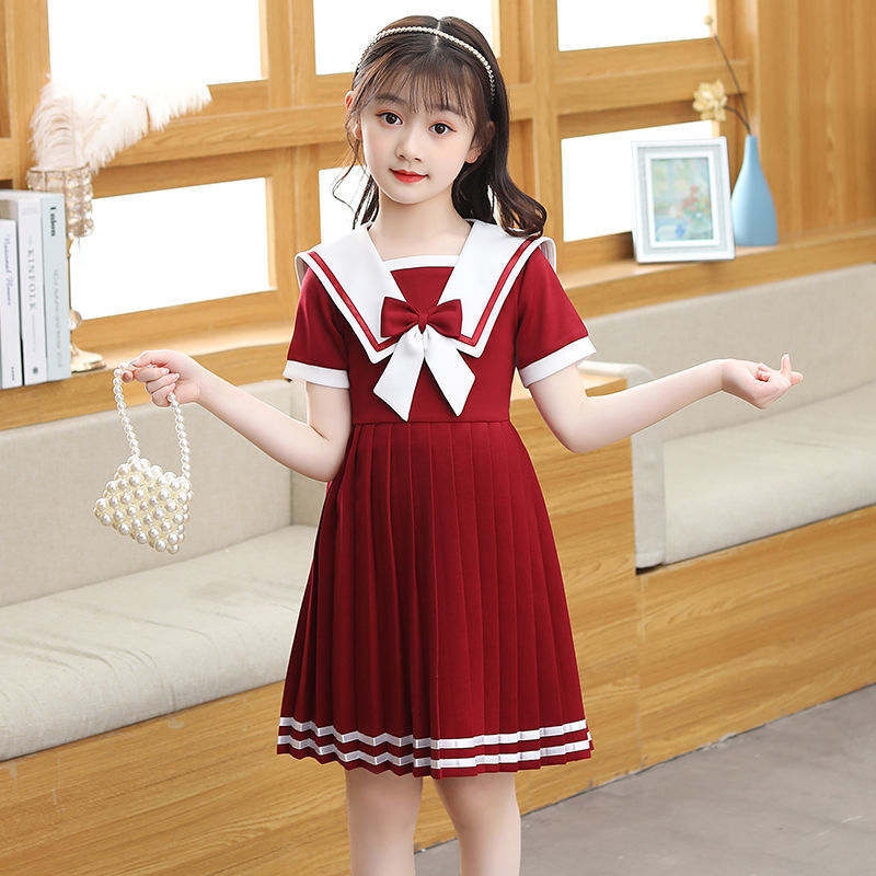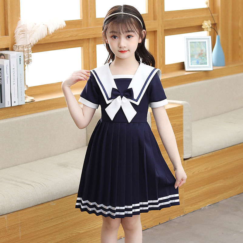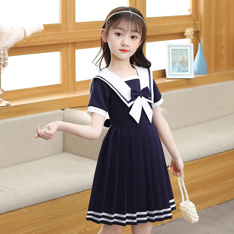 Angugu Girls Short Sleeve Dress Summer Dress Western Style Children's Princess Skirt Lorita JK Navy Style Little Girl Skirt College Style 2 To 12 Year Old for Teens Girls Terno Sale