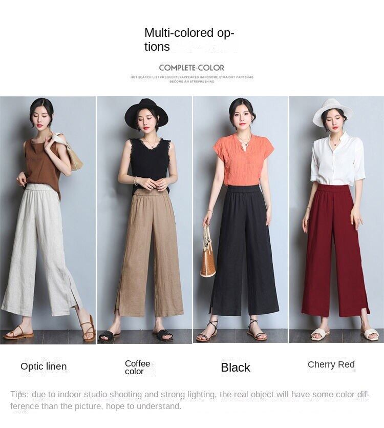 Wide leg pantsHigh waistedCotton and hempNinth pantsSimplified Commuting/Korean Version