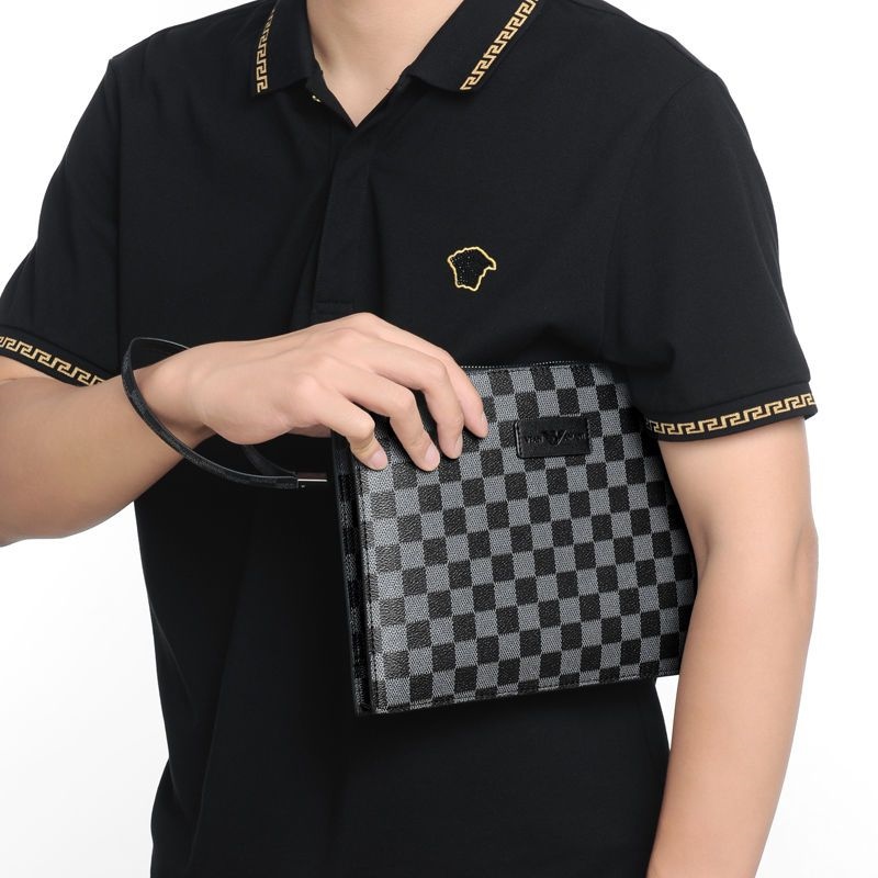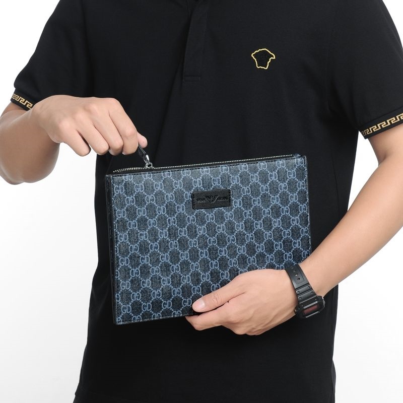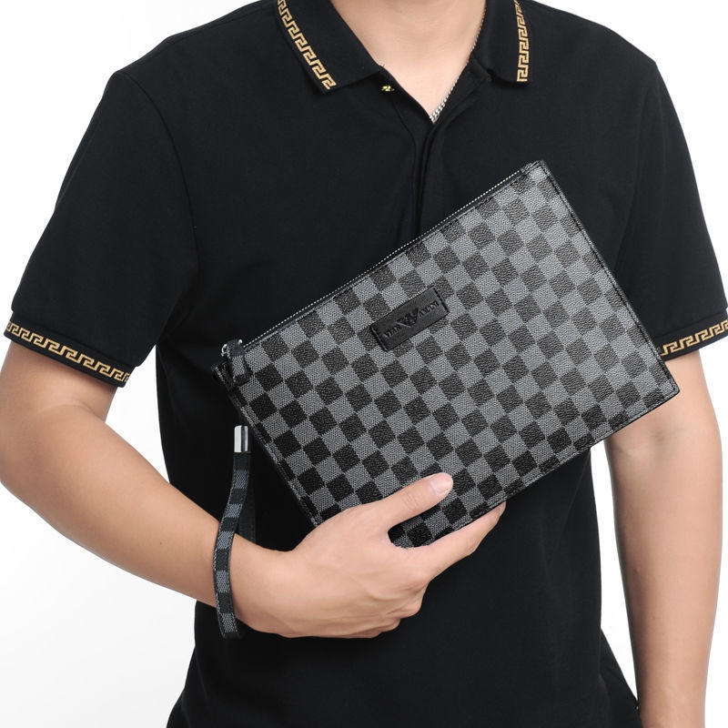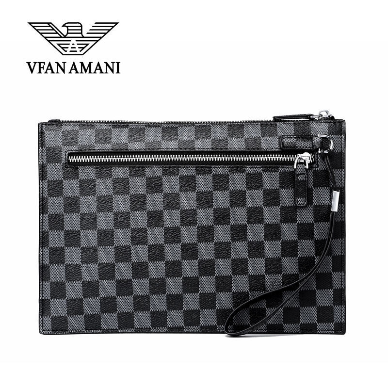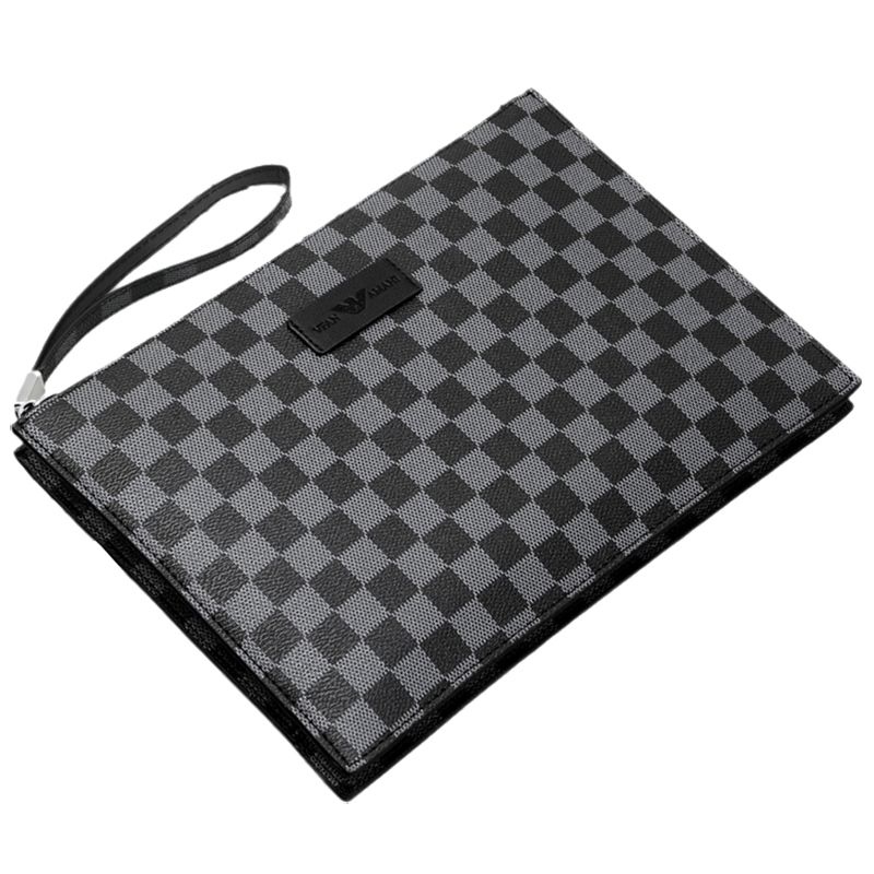 Weifang Armani men's handbag genuine leather clutch bag net red new plaid business clip envelope tide