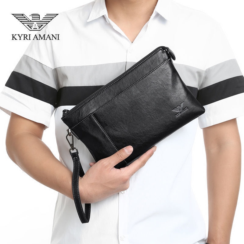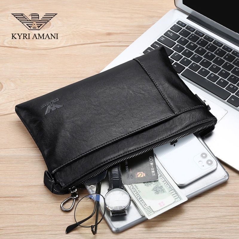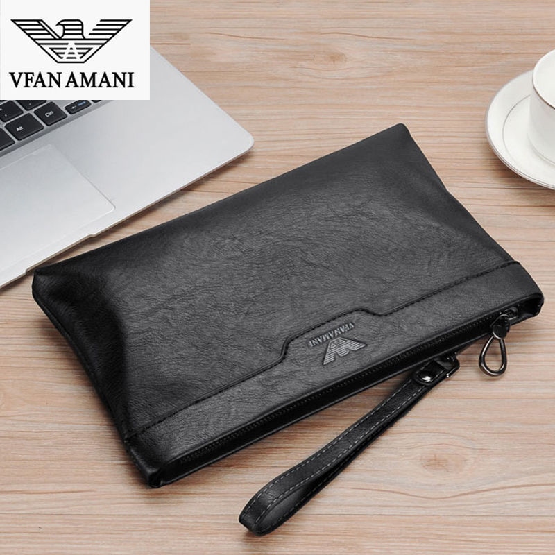 Victorian Armani Men's Genuine Leather Clutch Bag Business Casual Soft Cowhide Trendy Fashion Envelope