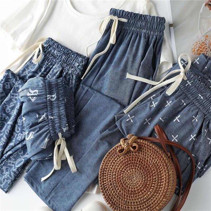 2023 Print Ice Silk Wide Leg Pants Women High Waisted Trousers Women Casual Baggy Pants Woman Fashion Summer Women's Pants