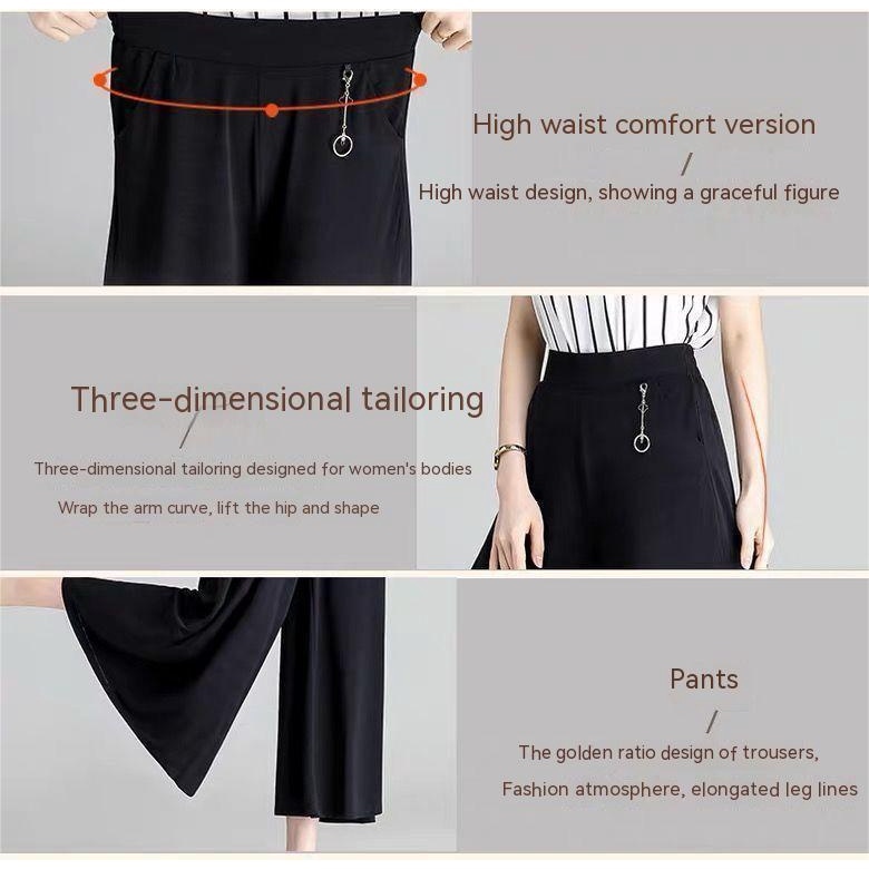 Women's culottes loose high waist thin fashion casual wide leg pants V808