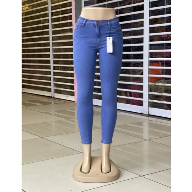 (Zara)SKINNY PANT WOMEN HIGH QUALITY STRICHABLE MID WAIST DARK BLUE, MID BLUE,