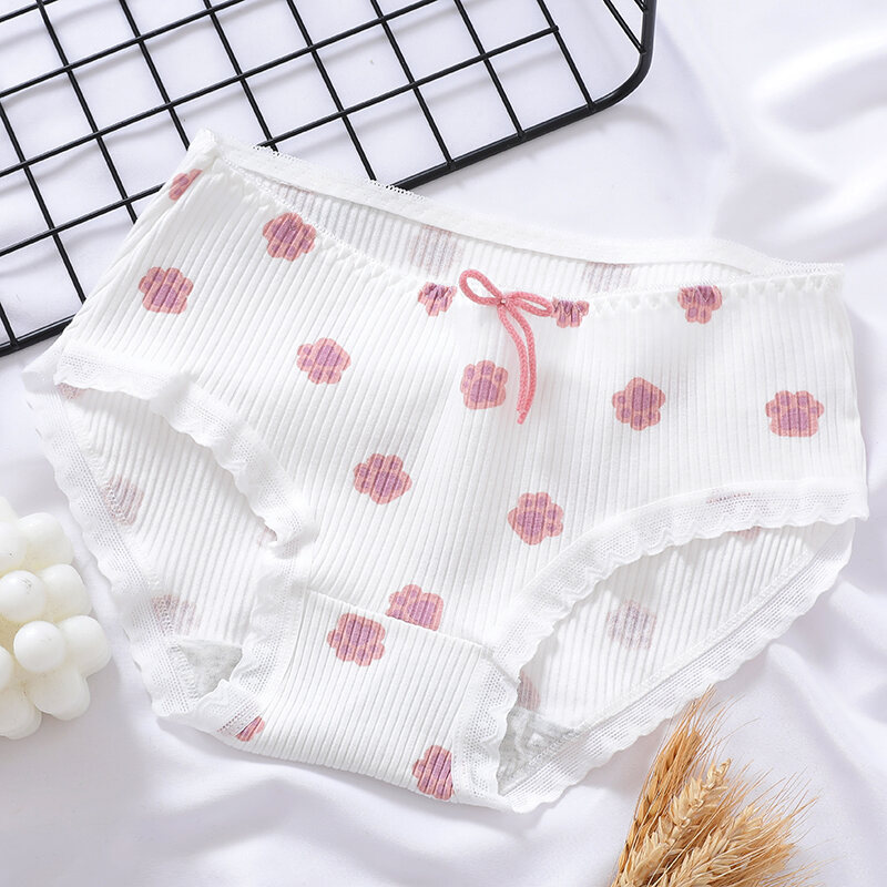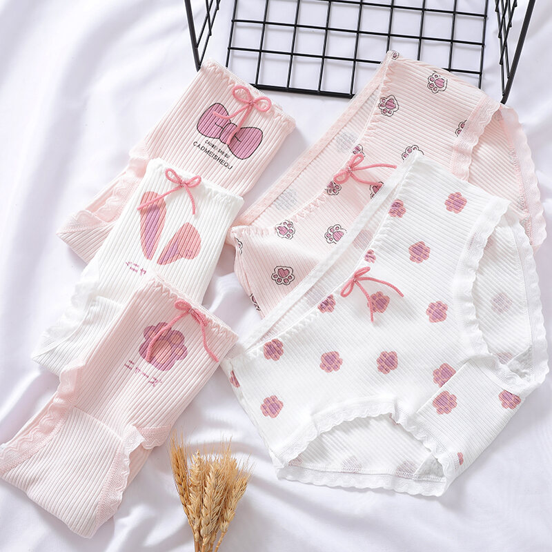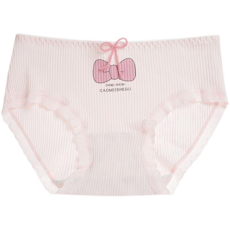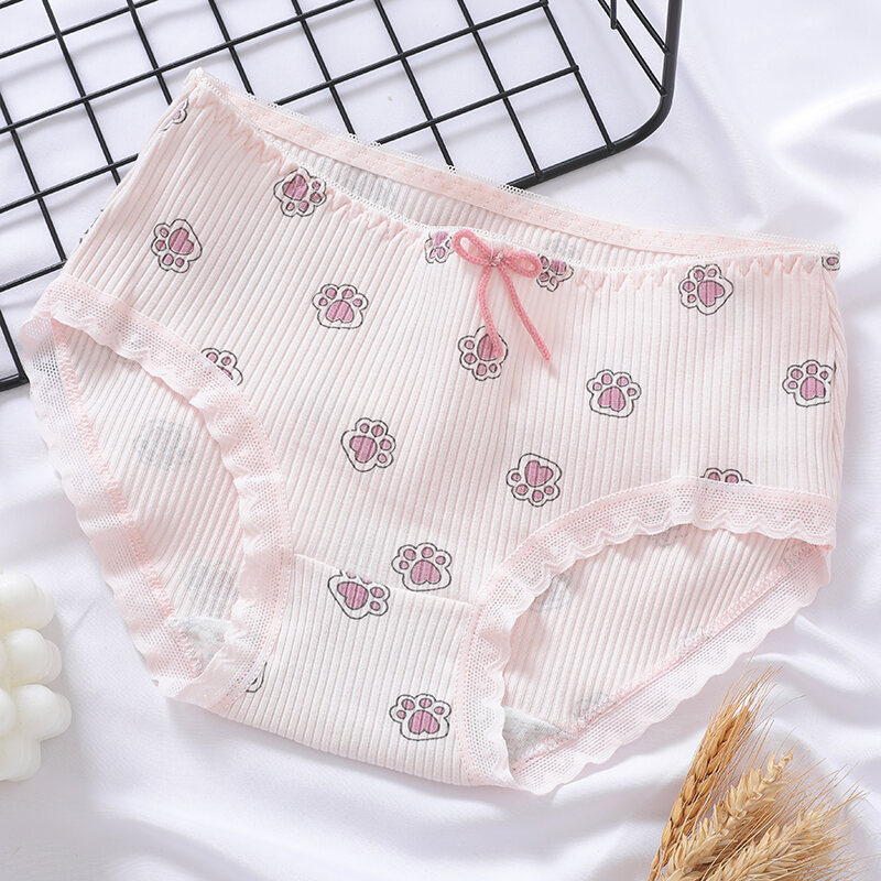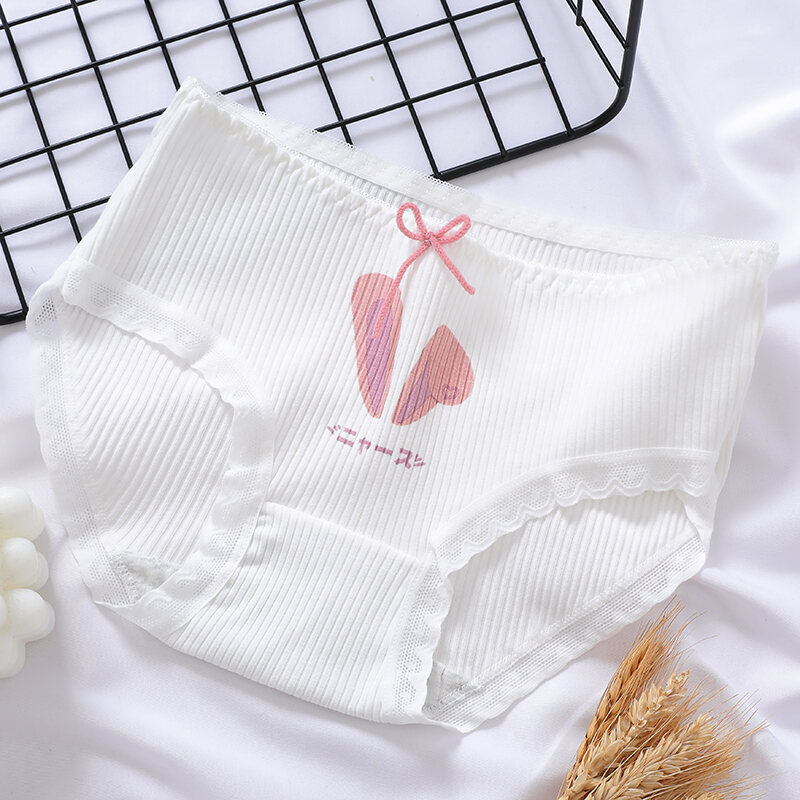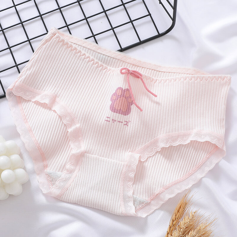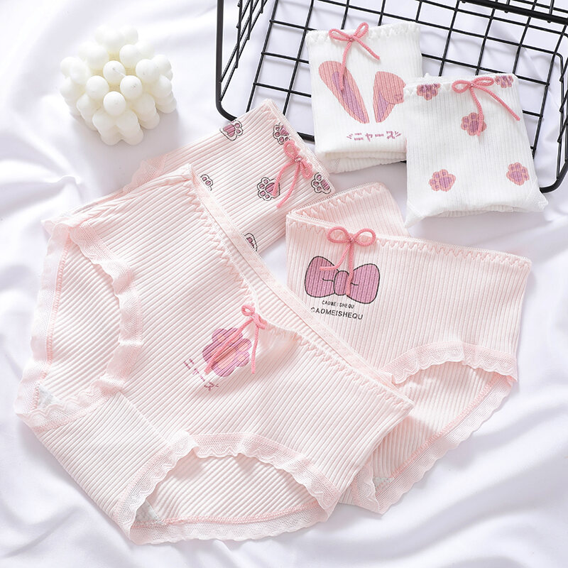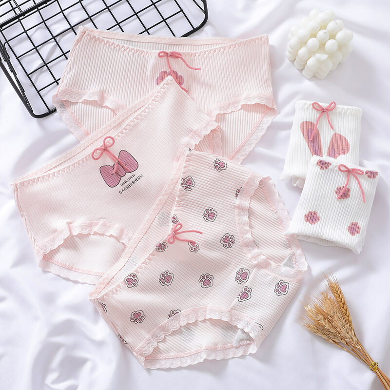 Japanese Style Soft and Adorable Cat's Paw Young Adult Underwear Thread Cotton Cute Rabbit Ear Mid Waist Bows Briefs Breathable