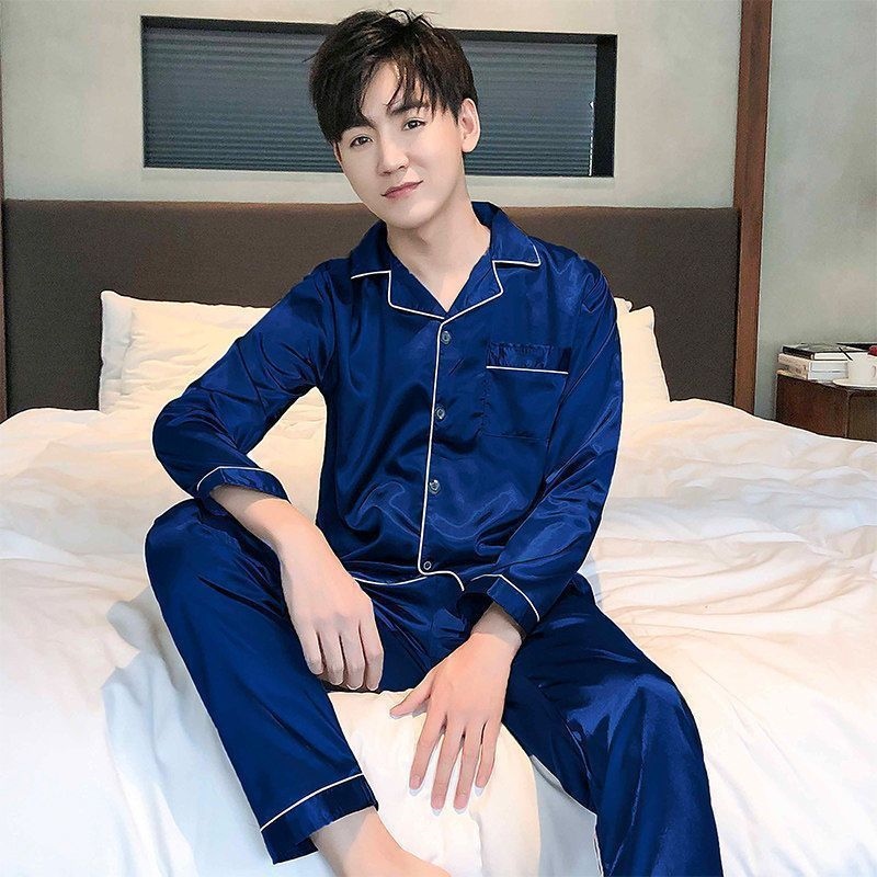 Men's pajamas ice silk spring and autumn long-sleeved thin large size home clothes men's summer 2022 new suit