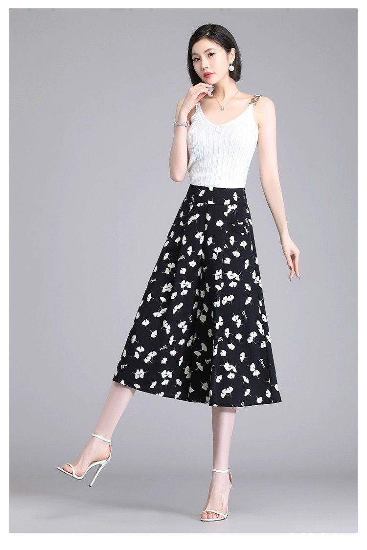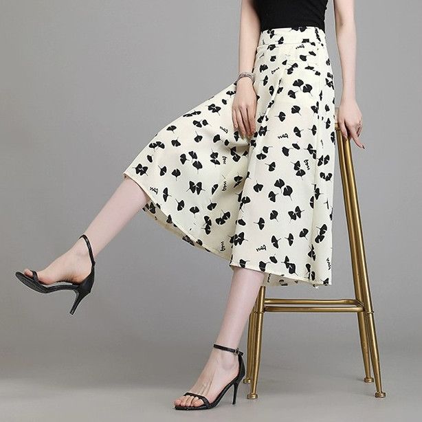 Women's Summer High End Skirts New High Waist Loose Small Casual Pants Skirt Thin Ice Silk Wide Leg Pants