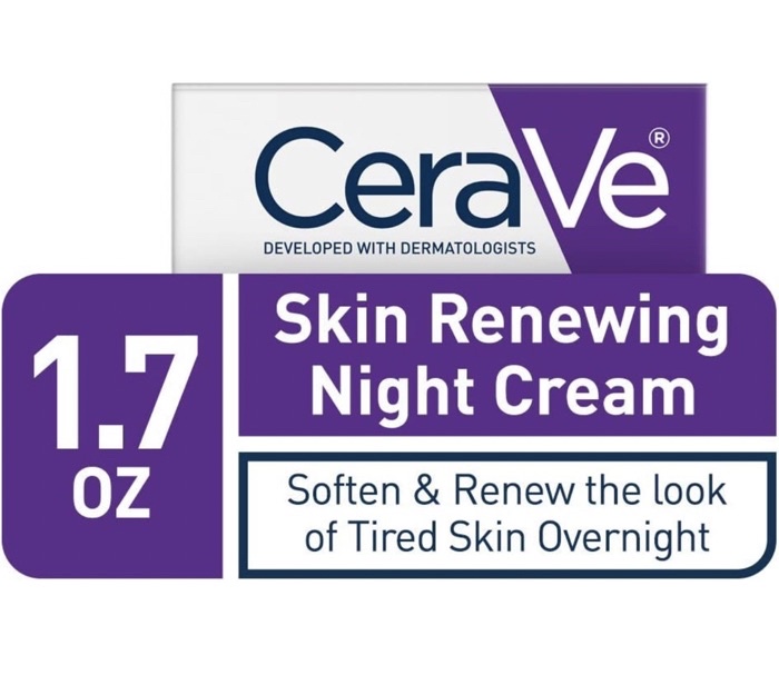 Product Description: Nighttime is the skin’s chance to help renew itself, and a properly formulated night cream provides hydrating and rejuvenating benefits. We recommend looking for formulas designed with hyaluronic acid, niacinamide and ceramides to hydrate, calm and restore the skin barrier, like our CeraVe Skin Renewing Night Cream, which also features peptides to help improve the appearance of fatigued skin. Suitable for all skin types, CeraVe Skin Renewing Night Cream features a complex of biomimetic peptides, hyaluronic acid, and 3 essential ceramides that work together to lock in skins moisture and help restore your skin’s protective barrier overnight. Our non-greasy, intensely moisturizing skin renewing night cream is designed to soften and renew the look of tired skin, and our patented MVE technology encapsulates ceramides to ensure efficient delivery within the skin’s barrier and slow release over time. Supporting your protective skin barrier, long after you’ve finish applying —so you can wake up looking rested and rejuvenated. ⭐Benefits: • Helps soften and renew the look of tired skin overnight • Provides intense hydration • MVE Technology: This patented delivery system continually releases moisturizing ingredients for all night hydration • Biomimetic peptides: Improve the appearance of tired-looking skin • Ceramides: Help restore and maintain the skin’s natural barrier • Hyaluronic acid: Helps retain the skin’s natural moisture • Niacinamide: Helps calm the skin • Non-comedogenic and fragrance-free • Developed with dermatologists.