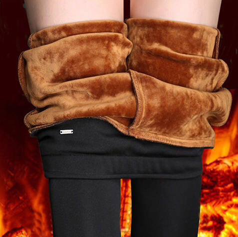 Women's Fleece-Lined Leggings, Plus Size, Skinny, Pencil Pants, Stretch, Plus Size, Middle-Aged Mom, Autumn and Winter