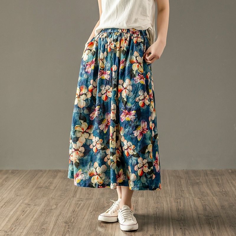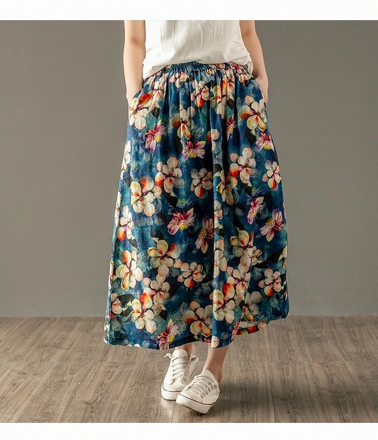 Women's Floral Skirt Casual Loose Slim A-Line Skirt Summer New Fashion Versatile Retro Skirt
