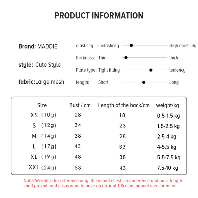Welcome to our store: ZOEF PET Pet supplies store. Hope you can find products you like here. Material: Polyester Product category: Vest Dressing style: cartoon Color: Duck Mesh, Headphone Mesh, Whale Mesh, Rainbow Star Mesh, Crown Mesh, Turtle Mesh, Sponge Mesh, Jingle Mesh, Chinchilla Mesh, Spider Mesh, Size: XS, S, M, L, XL, XXL. Related festivals: Christmas, Valentine's Day, Spring Festival, New Year's Day, Tanabata, Halloween, Easter, Children's Day. If you are interested in products in the store Please contact us. Click to follow the store for convenience in ordering. All products are shipped from China, so it will take 15-20 days. Please believe that our products are worth the wait. Every product is inspected before being packed. If the customer finds that the product is damaged or has other problems after receiving the product, please take a photo and send it to the store, do not give 1 star immediately, we will resolve it as soon as possible to meet your needs. If you are satisfied with the delivery, please give the store 5 stars. Thank you for your support