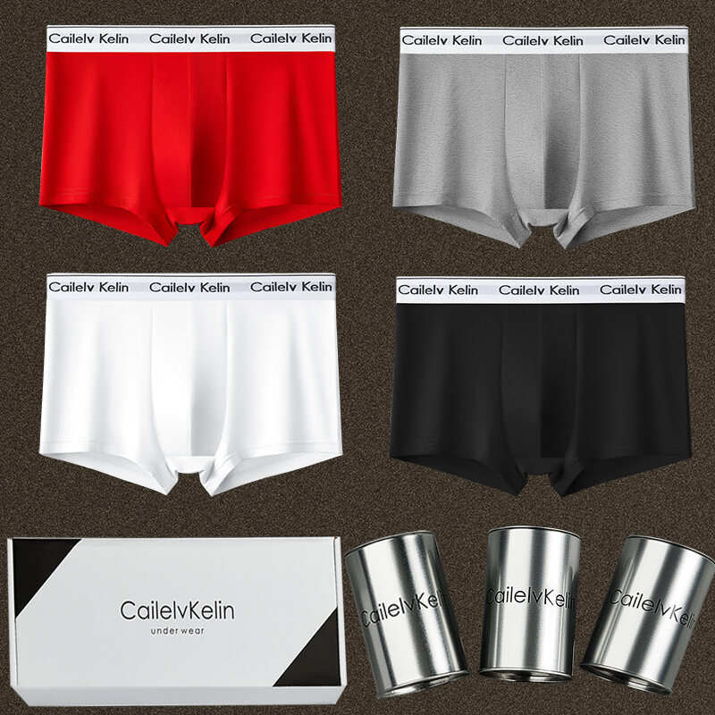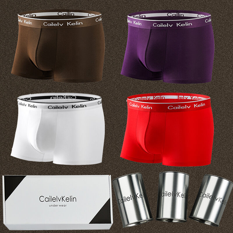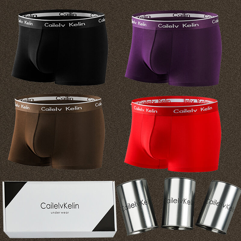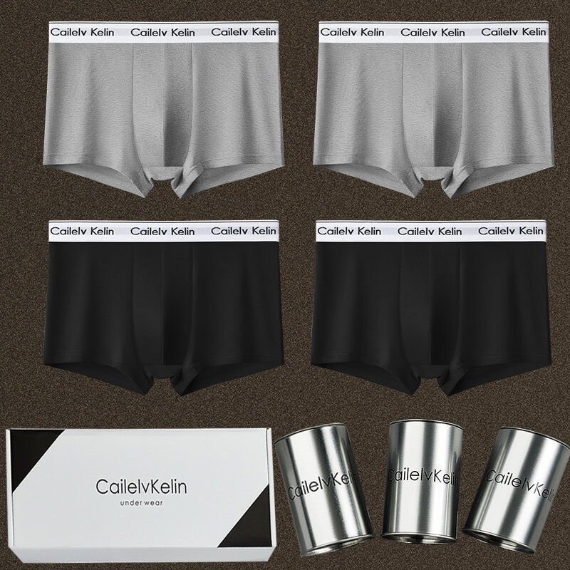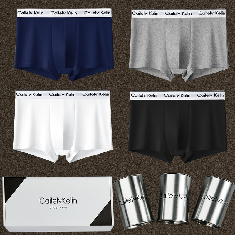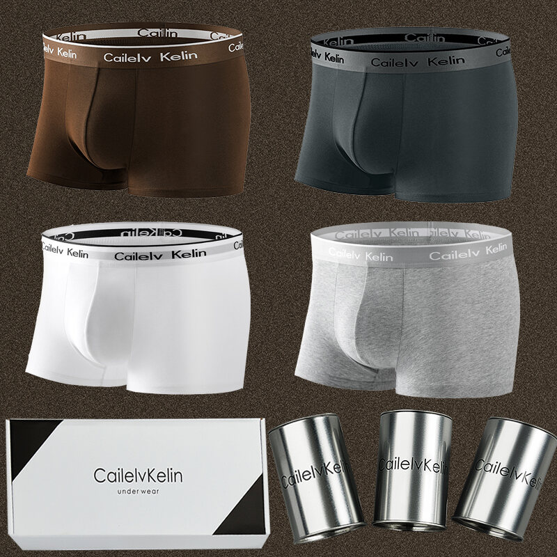 CK & Javge Men Underwear Men's Boxers Pure Cotton Modal Breathable Boys Style Boxers 2024 Mid Waist