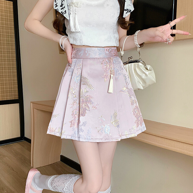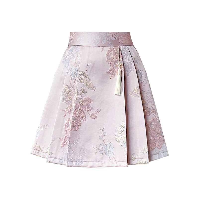 YIGE High end satin jacquard horse face skirt 2024 new Chinese style half skirt for women with small stature and pleated short skirt