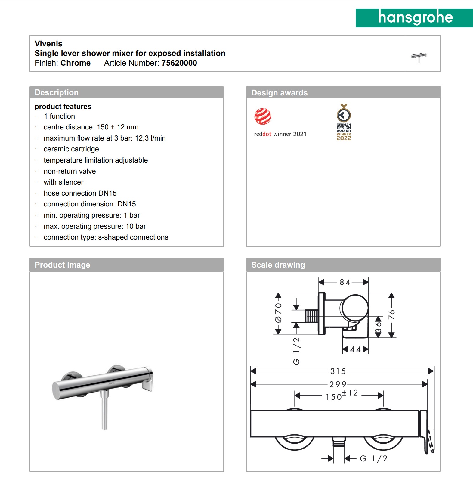 maximum flow rate at 3 bar: 12,3 l/min