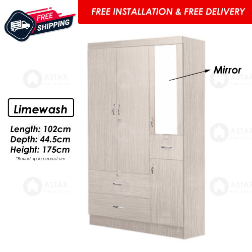 Furniture Amart 2 / 3 Door Wardrobe Solid Plywood Cabinet with Lock Drawers standalone Soft close Door (Limewash)