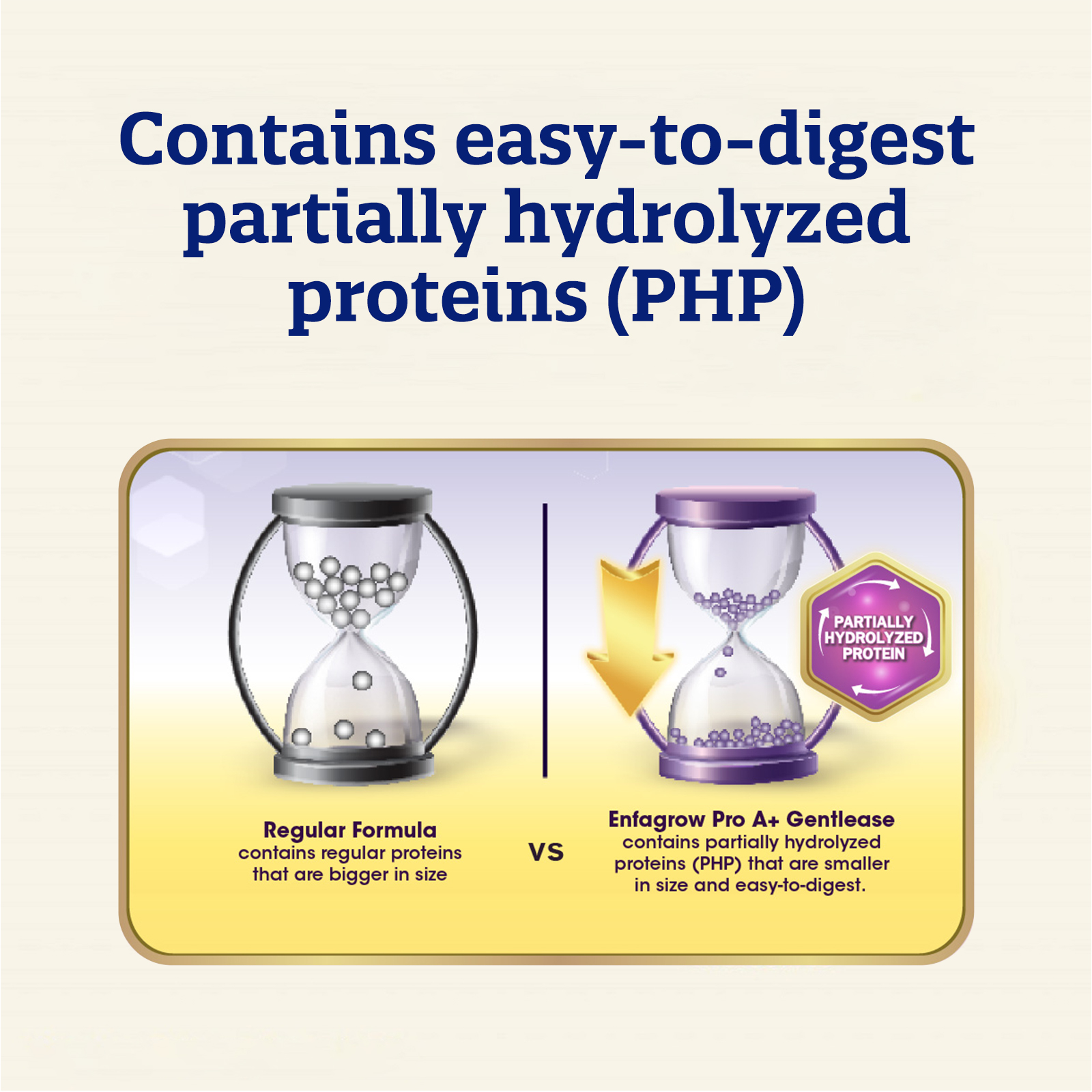 - Easy-to-digest partially hydrolyzed proteins (PHP) are proteins that are partially broken down through the Protein Hydrolysation Process technology.