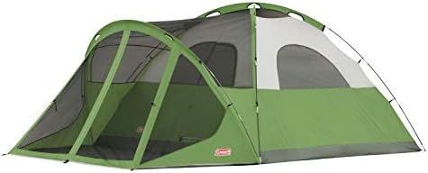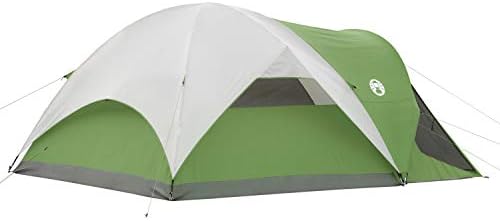 polyester taffeta 75D Made in the USA or Imported Measures 14 x 10 feet with 5-foot 8-inch center height Spacious tent has enough room for 6 people with 2 queen size airbeds Sets up in 15 minutes with rainfly and carry bag included Snag-free continuous pole sleeves with insta-clip attachments to stand up to winds WeatherTec System features patented welded floors and protected seams to keep you dry, angled rainfly lets in light but not water