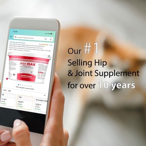 OUR PROPRIETARY BLEND OF INGREDIENTS IS BACKED BY SCIENCE: Joint MAX is a quality hip & joint supplement for dogs at any stage in life. Our soft chews help ease everyday joint stiffness, arthritis pain and support joint structure. Joint MAX offers a convenient and tasty way to provide essential joint care. ADVANCED CARE FORMULA - Joint MAX TS contains a powerful mobility-supporting formula that includes Glucosamine, Chondroitin, Omega-3, Creatine, EPA + DHA and Turmeric. Our formula helps reduce oxidative stress, targets lubrication, cushioning of tissues and provides arthritis pain relief. EASY TO USE - Say goodbye to the struggle of giving your dog supplements! Joint MAX supplements have a delicious liver flavor, making them highly palatable and encouraging compliance. Joint MAX has been shown to provide positive joint mobility responses in as little as 10 days. RELIEF FROM INFLAMMATION - For active dogs or once active dogs that still love to play, Joint MAX Triple Strength uses natural turmeric root to reduce inflammation and relieve joint pain. Your pet will finally rest comfortably after a rough day at the dog park with our super joint enhancer. PERFECT FOR DOGS AT ANY AGE or SIZE - Younger or senior dogs, large dogs and every dog in-between; prevention for pets that have yet to show signs or dogs that have a difficult time moving. Expect big improvement in their flexibility and mobility.See less #8,032 in Pet Supplies ( ) #102 in