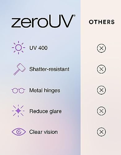 100% UV Protection - Get full trendy eyewear protection from harmful UVA & UVB sunrays whether running errands or on a weekend vacation getaway. These cute women's frames are crafted with reinforced hinges and durable polycarbonate lightweight lens. HD Polarized Lenses - Minimize glare when outdoors with our specially crafted polorized sun glass. Get clear, crisp vision in bright light with improved color eyestrain. Ideal for anyone looking to reduce or prevent eyestrain and light sensitivity. Stylishly Oversize: The timeless design is perfect for year-round everyday wardrobe. The thick rim adorned with metal rivets offers a high fashion classy oversized fit. The squared shape is fits most face shapes. Great for driving and outdoors. Durable design: Bold and Unique tinted for men and woman, these dark chunky sunglasses are comfortable for all day wear. The reinforced hinges on the high temple shape has been proven to be the perfect oversized style for all seasons and sun rays. zeroUV Promise: We are committed to building trust with our fans. If you have any questions about the product or purchase, please contact us. We are happy to help! Our top priority is to provide an excellent shopping experience. #157,233 in Clothing, Shoes & Jewelry ( ) #1,579 in