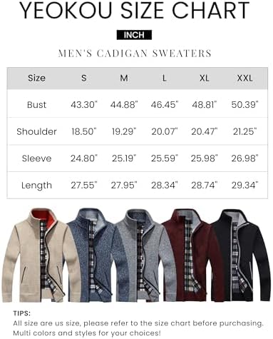 Long sleeve zipper knit sweater jacket Classic stand collar, two slant deep functional pockets, not fake Ribbed cuffs, hem and collar, perfect windbreaker outercoat for early spring, late autumn and winter Fully plaid fleece lined include the arms, ultra soft and warm, classic casual look suit for any occasions All items are US size, not runs small, also you can check the detailed size chart in product description before order