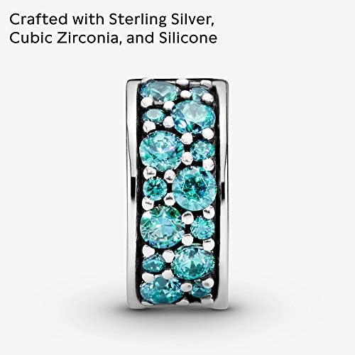 PANDORA Shining Elegance Clip Charm, Sterling Silver, Teal Cubic Zirconia, One Size
