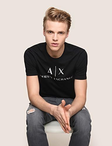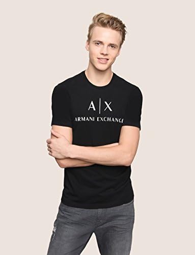 A|X ARMANI EXCHANGE mens Classic Crew Logo Tee T Shirt, Black, Medium US