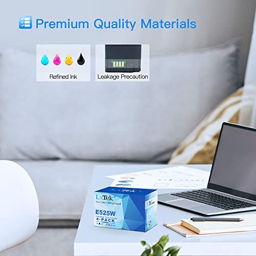 All LxTek toner cartridges for Dell E525W are strictly tested with industry quality control process to ensure a no leakage using experience before delivery, remanufactured with ISO9001 & ISO14001 certified Smart chip and refined toner to ensure a smooth using experience Package Contents: 4 Pack (1 Black |1 Cyan |1 Magenta |1 Yellow) compatible for E525W toner cartridges Page Yield: 2, 000 pages per black toner cartridge and 1400 pages per color toner cartridge at 5% coverage in accordance with ISO/IEC 19798 (Letter/A4) Compatible Printers: Dell E525W Color Laser All-in-One Wireless and Cloud Ready Printer